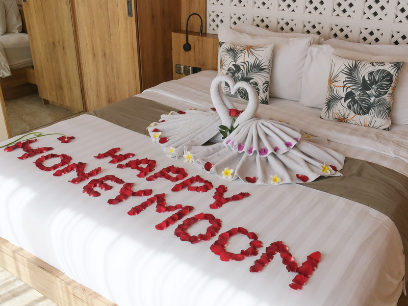 – Flower decor on the bed & bathub